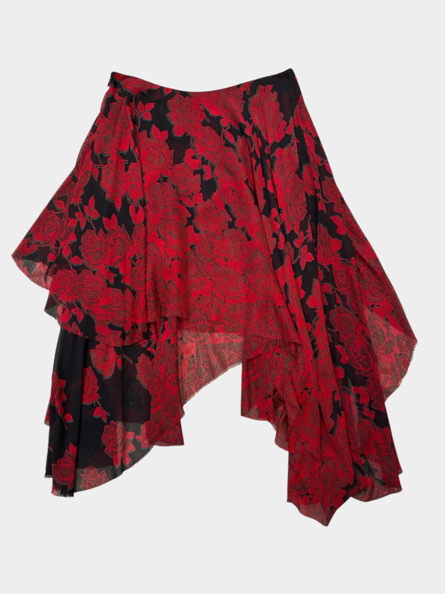 Alexander McQueen Silk Asymmetric Floral Skirt from the SS02 «Dance of the Twisted Bull» collection.