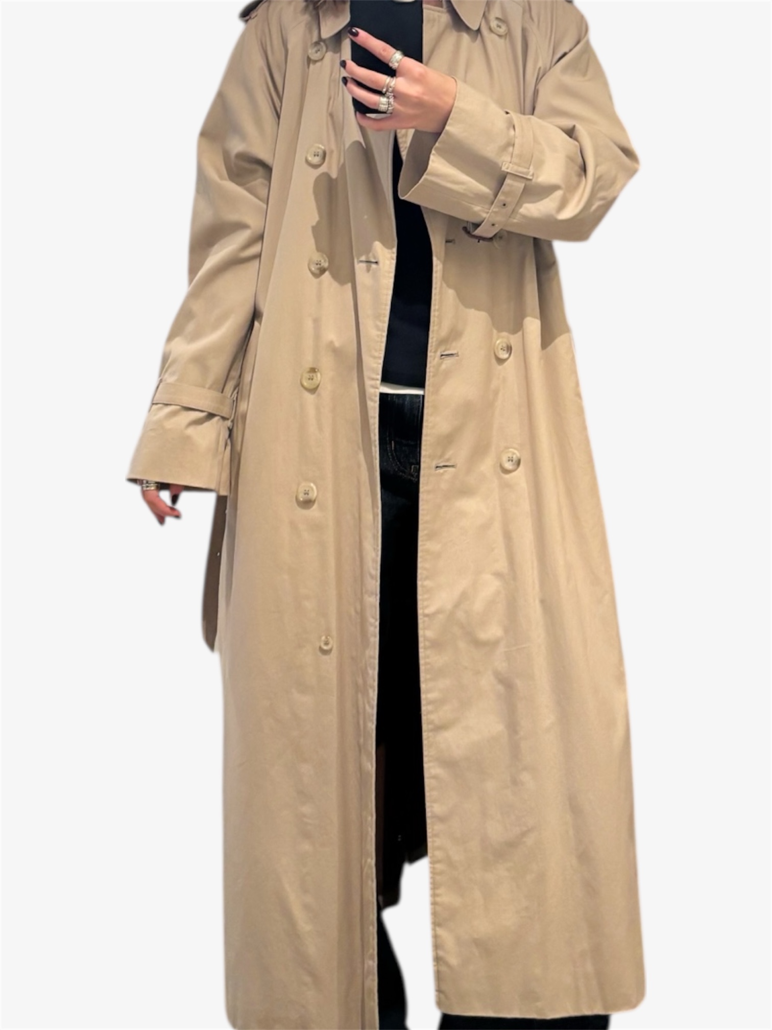 Klassisk vintage Burberrys trenchcoat fra 1980-tallet i tidløst design. Frakken er laget i slitesterk bomull med karakteristiske detaljer som dobbeltspent front, belte i livet og ullfôr. Et elegant og tidløst ytterplagg med autentisk britisk arv.